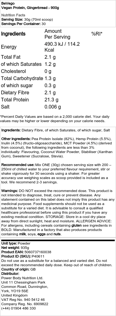 Hver portion af BeVego leverer over 20 g højkvalitetsprotein med lavt sukker- og fedtindhold, hvilket gør det nemt at blande ind i dine yndlingsretter eller shakes.